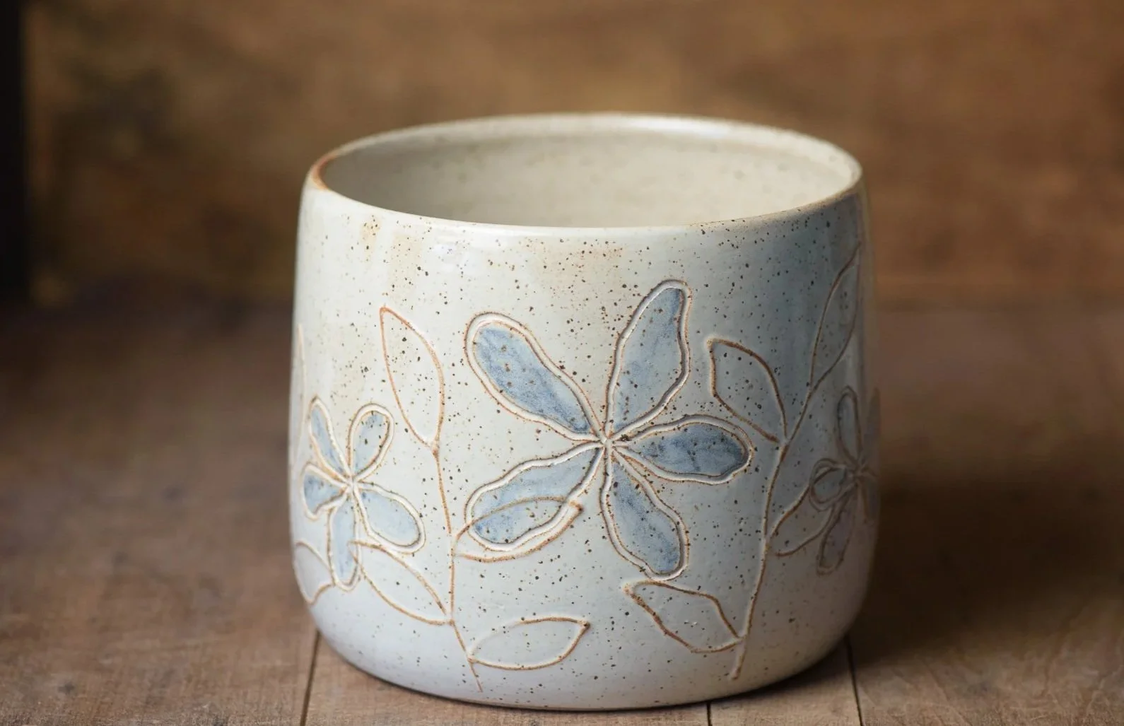 I am a home studio potter, based out of Loveland, Ohio and I create handmade ceramics inspired by botanical elements and earthy textures. I specialize in artful and functional stoneware that is uniquely hand decorated using a variety of techniques such as carving, staining, and slip trailing. Each piece is crafted and fired with care to ensure a safe, durable, and beautiful surface that can be enjoyed daily for years to come!